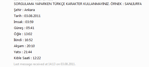 ezan vakitleri Messenger ve GTalk'da hizmetinizde